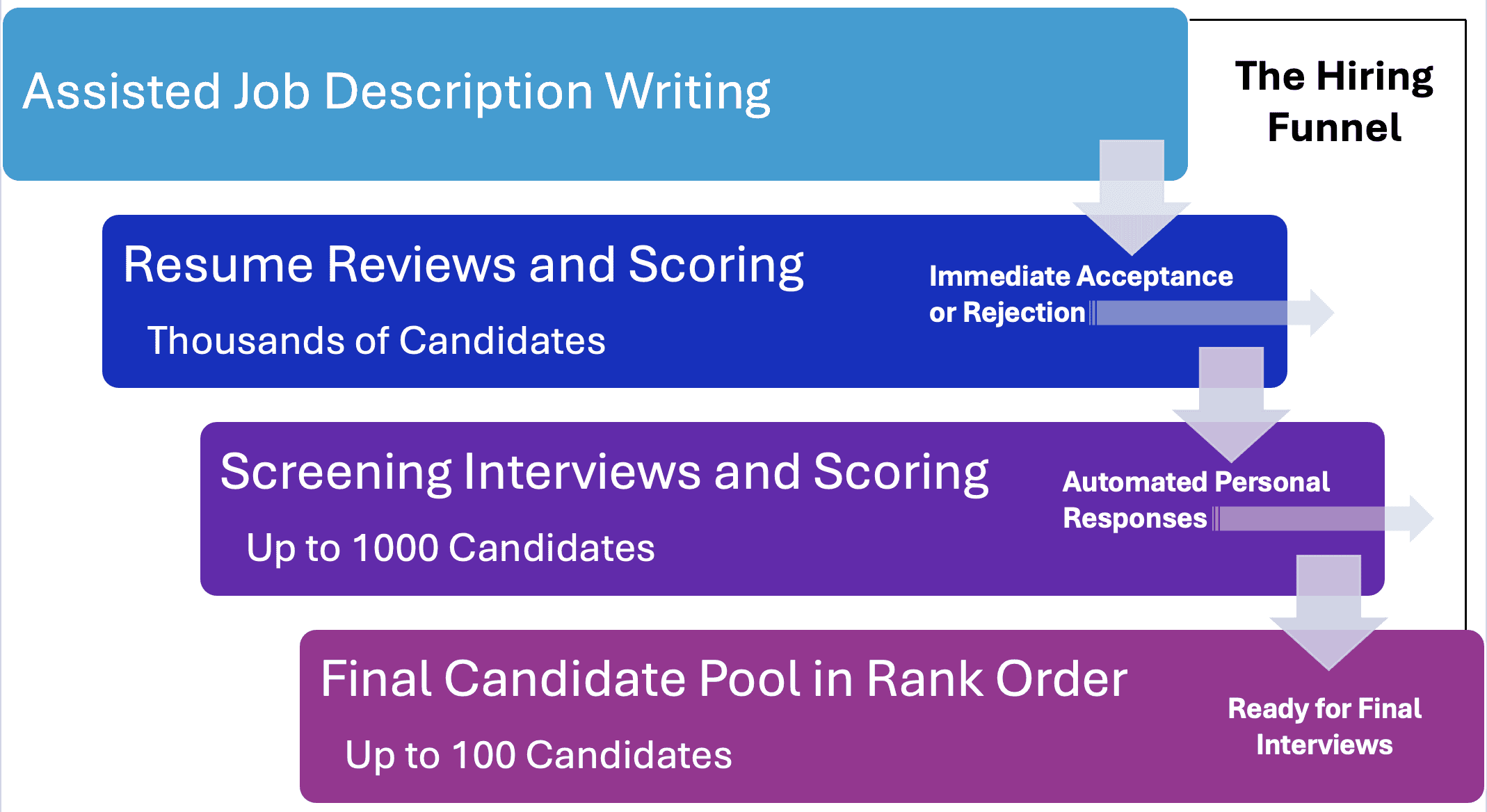 HireSage is a fair and efficient recruiting tool that includes job description assistance, reviewing and scoring resumes, and screening top talent. It does the initial work of recruiting and builds the candidate pool for you so that you can focus on interviewing the very best candidates. We can make sure that you can interview everyone who is qualified and you can quickly build the very best candidate pools for every position.